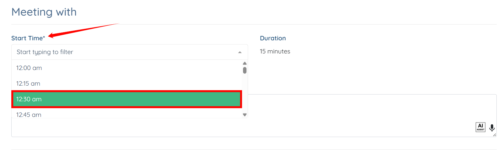 Step 2: Select the meeting’s start time as required.