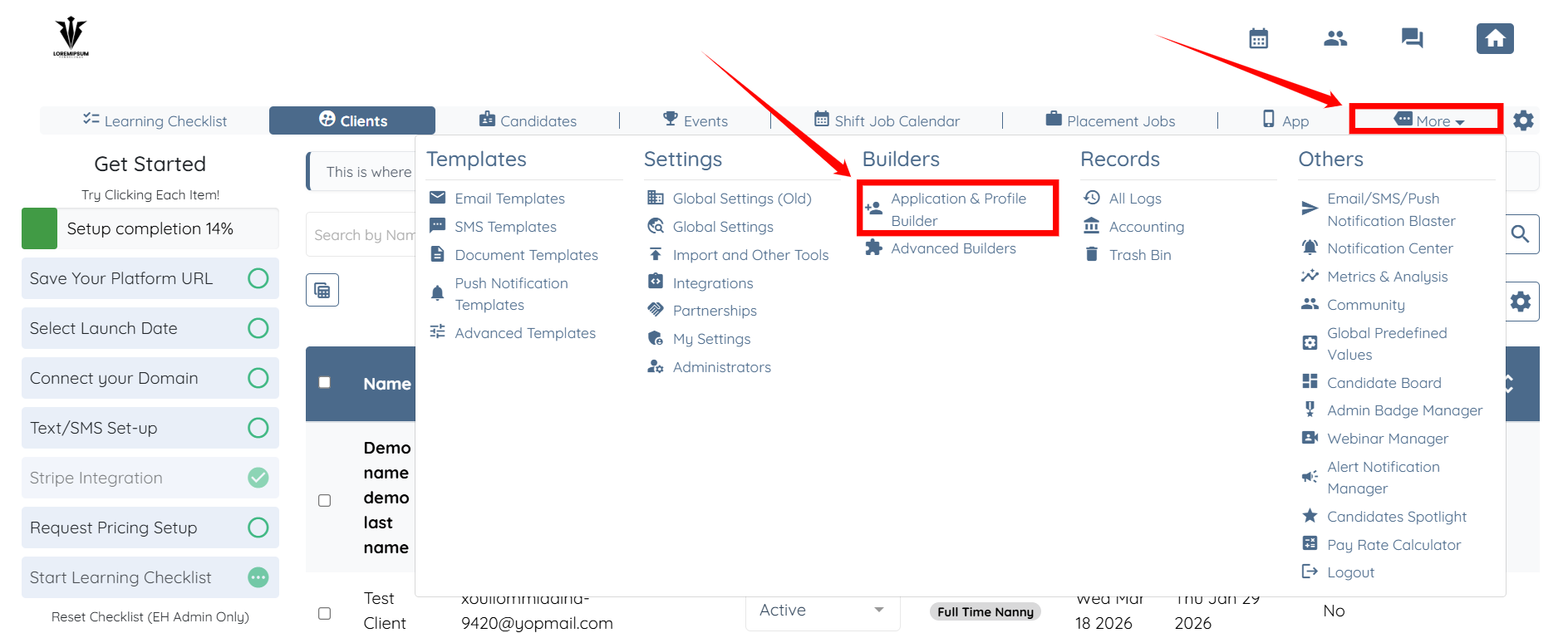 Step 1: On your agent dashboard, click More > Application & Profile Builder as shown in the screenshot below.
