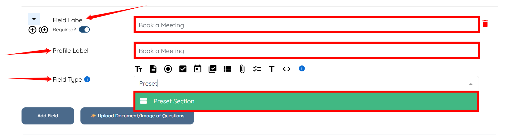 Step 4: Enter the Field Label and Profile Label, then select the Preset Section as the Field Type.