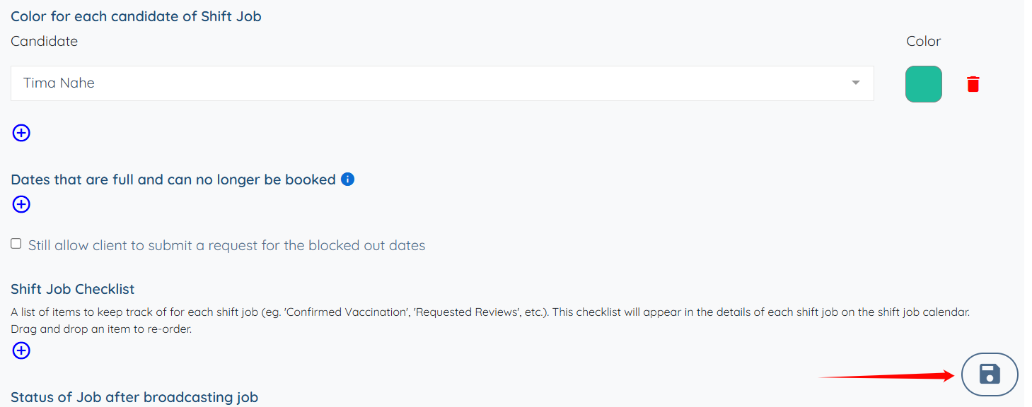 Step 9: Check the Show shift job color in candidate job board checkbox.
