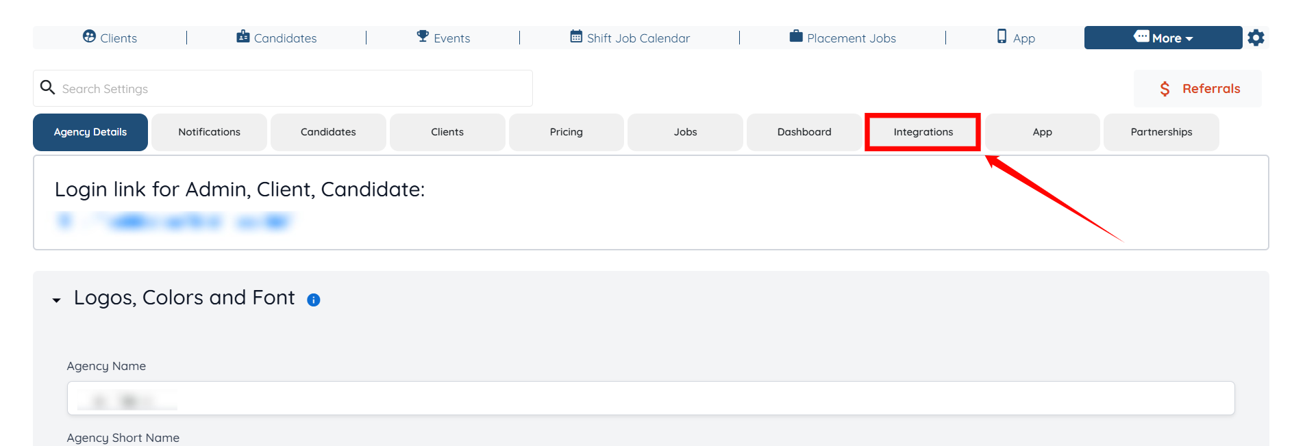 Step 2: Click on the Integrations tab from the list of tabs available.