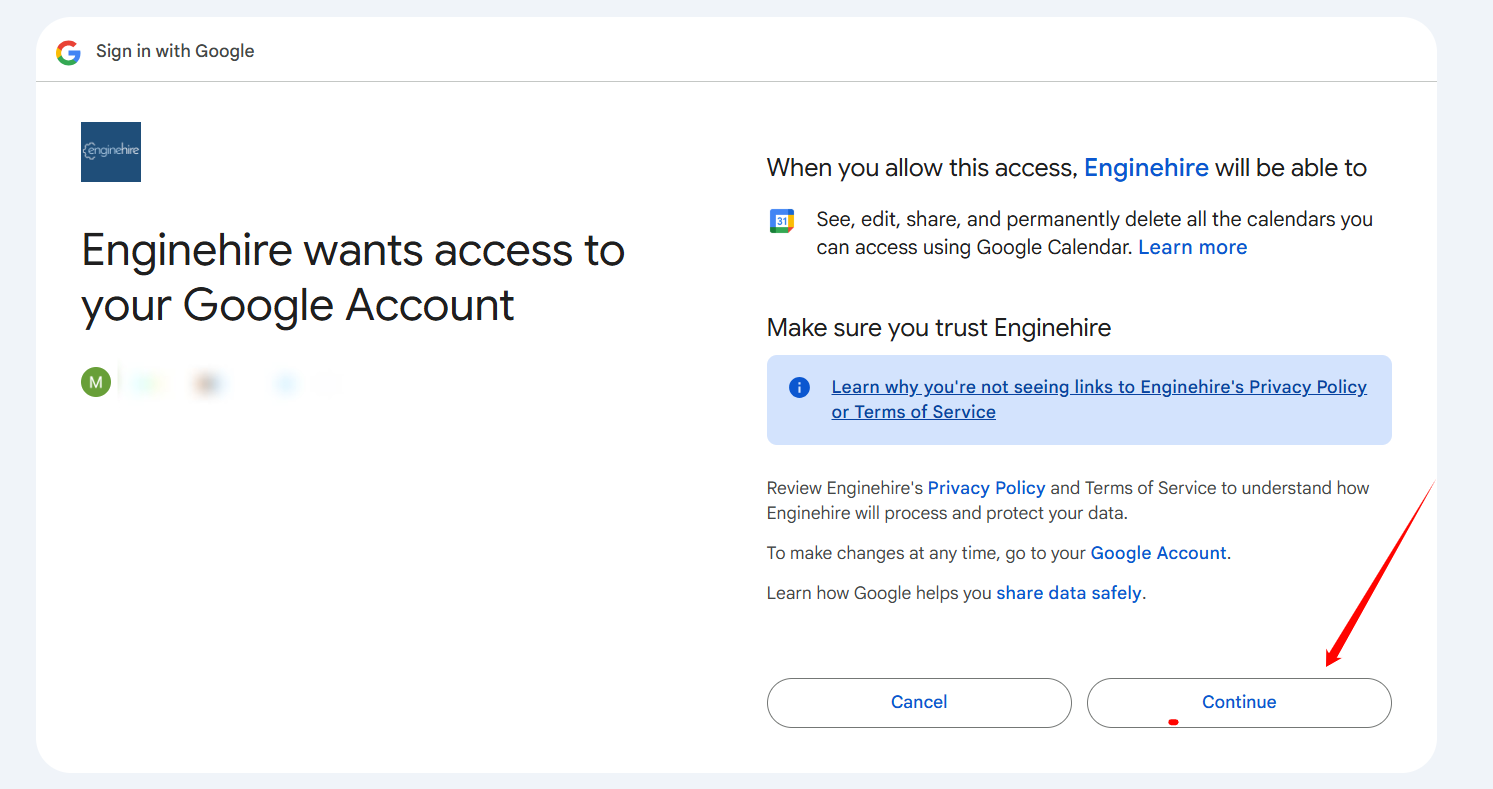 Step 5: Select the account you want to use to connect the Google Calendar.