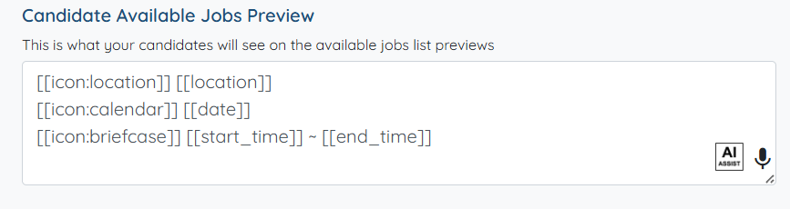 Similarly, this section showcases what your candidates will view on the Available Jobs List preview screen. You can customize this view by making adjustments and adding tags and icons from the drop-down menu. If you prefer not to make any changes, default settings are already in place.