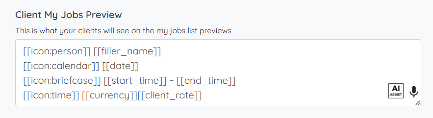 This section showcases what your clients will view on the My Jobs List preview screen. You can customize this view by making adjustments and adding tags and icons from the drop-down menu. If you prefer not to make any changes, default settings are already in place.