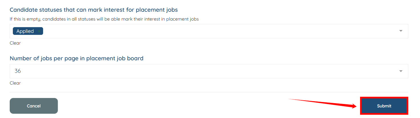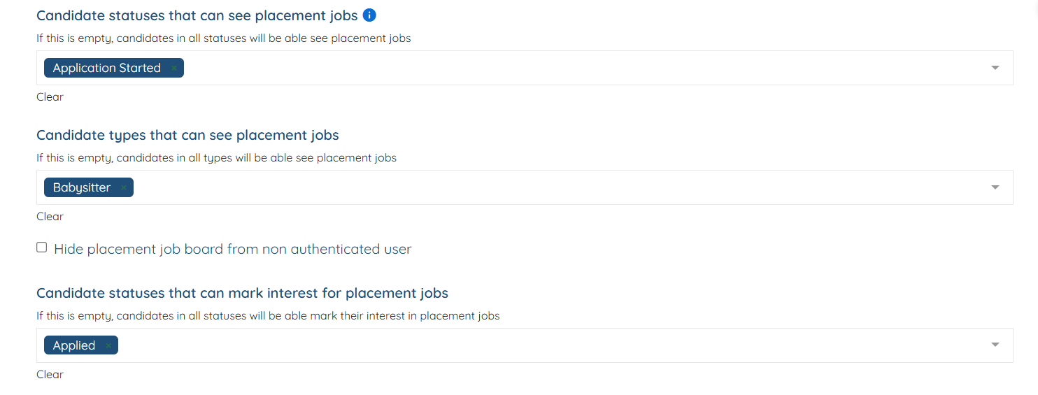Step 4: Select the candidate statuses and types that can view placement jobs and that can mark their interest in placement jobs.