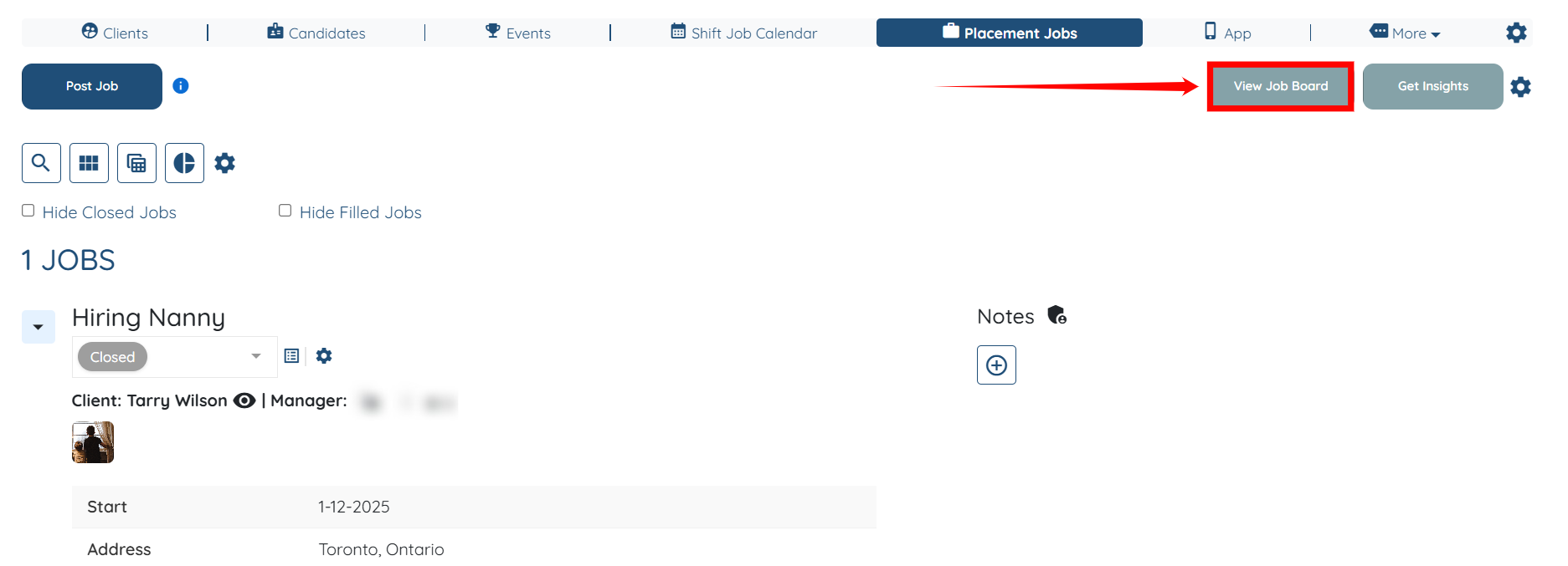 Step 2: Click the View Job Board on the right hand side of the screen.