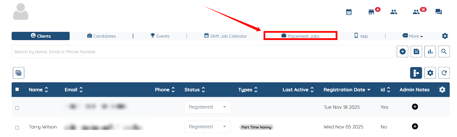 Step 1: Click the Placement Jobs from the top navigation bar.