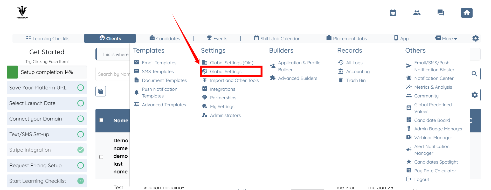 2. Select Global Settings.