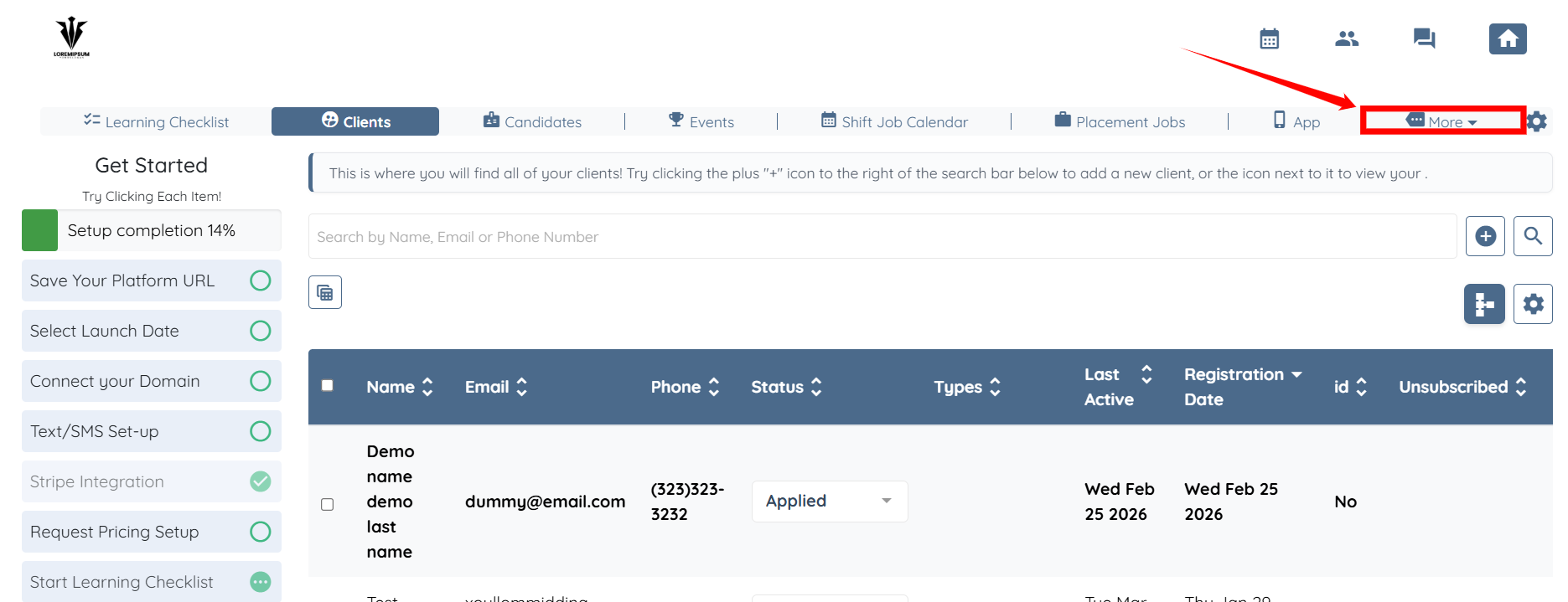 1. On your agent dashboard, click More.