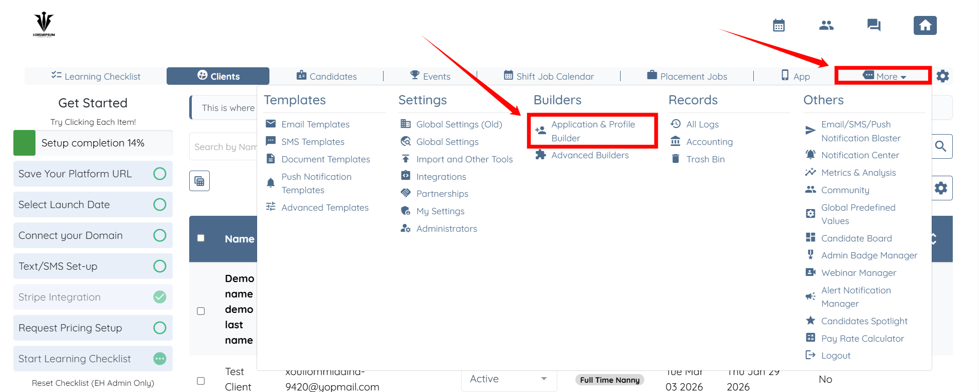 Step 1: Log in to your agent dashboard and click More > Application & Profile Builder as shown in the screenshot below.