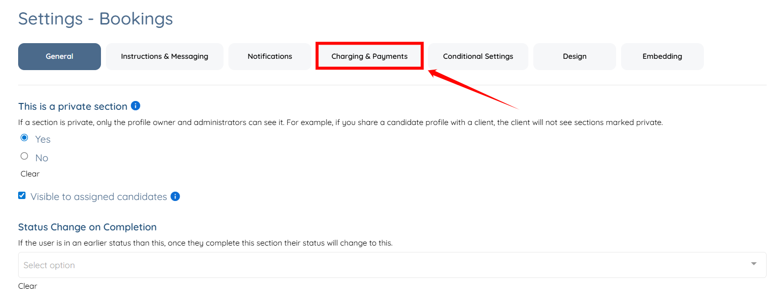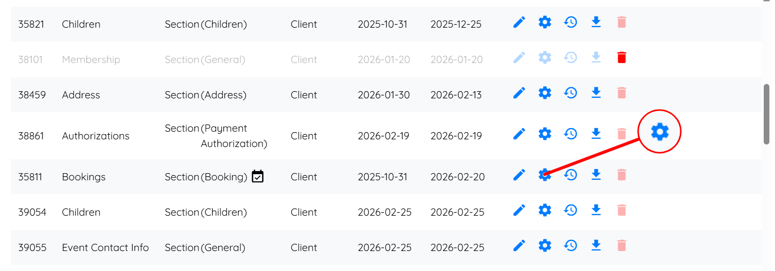 Step 2: Scroll down to locate the Bookings section, and then click the corresponding Gear icon.