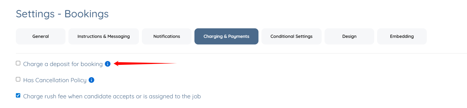 Step 4: Check the Charge a deposit for booking checkbox.