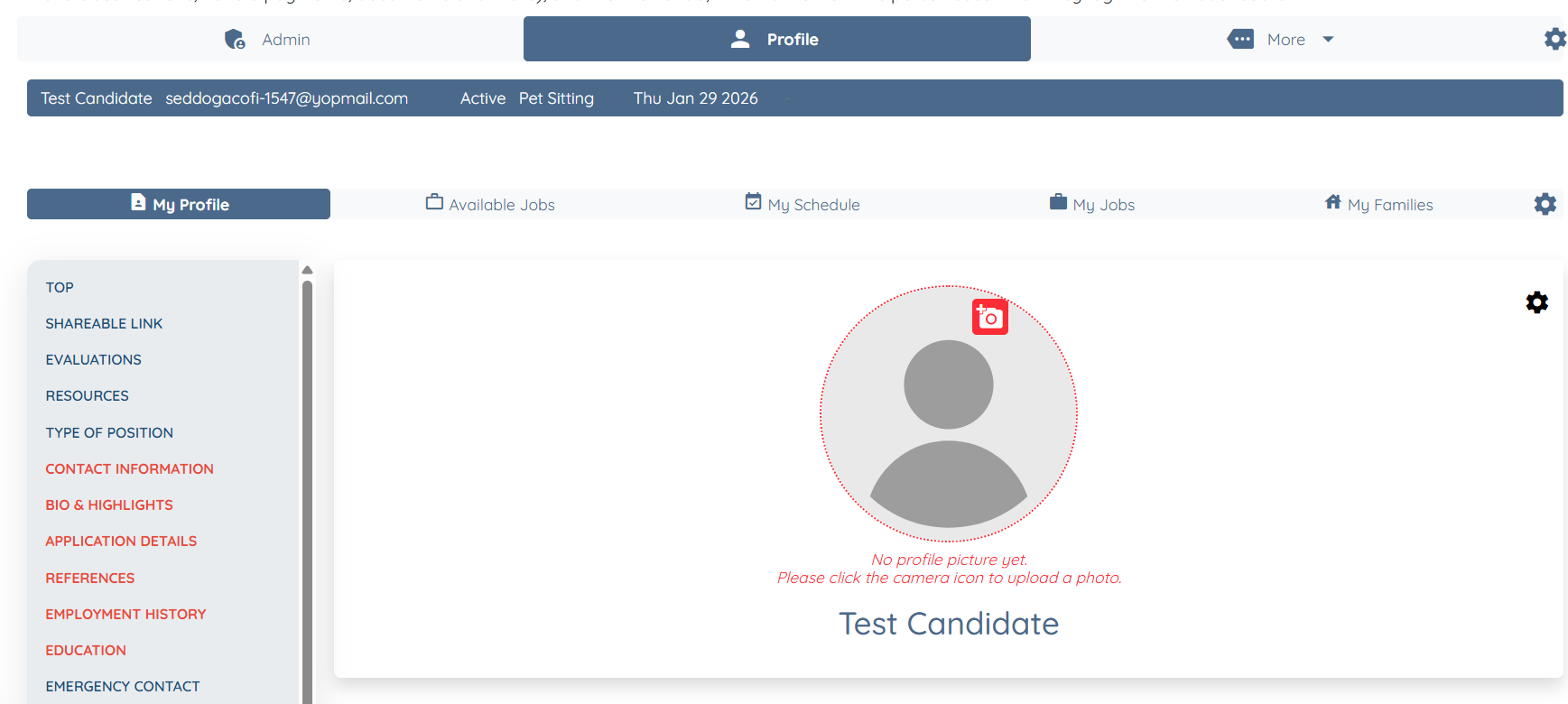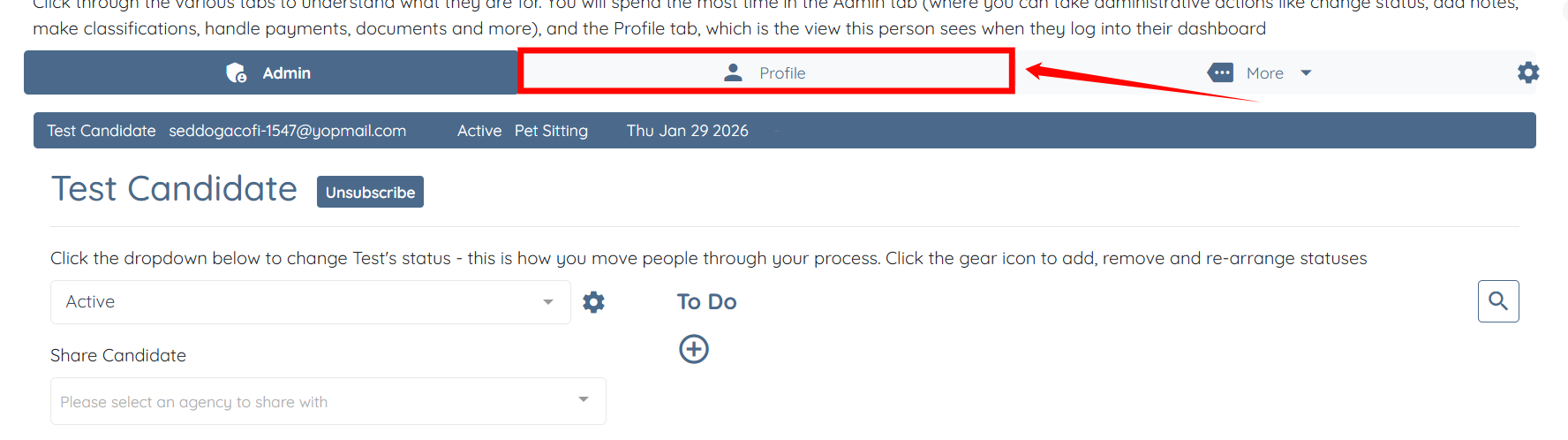 Step 3: Click the Profile tab to navigate to the candidate’s profile.