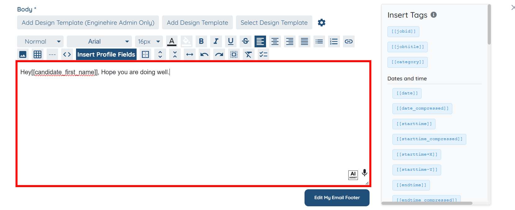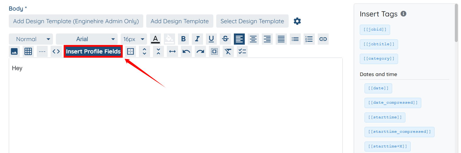 Step 4: Scroll down and click the Insert Profile Fields button to add the profile fields as tags.