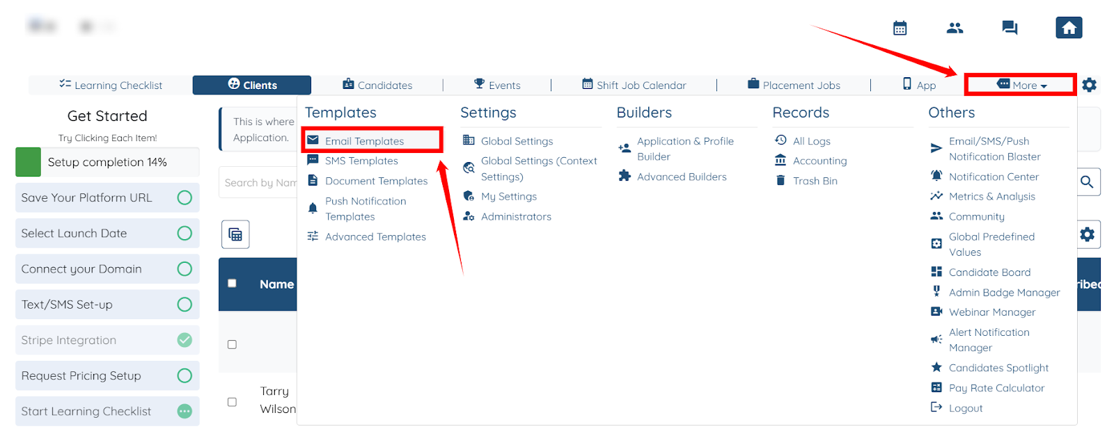 Step 1: Log in to your agent dashboard and click More > Email Templates, as shown in the screenshot below.