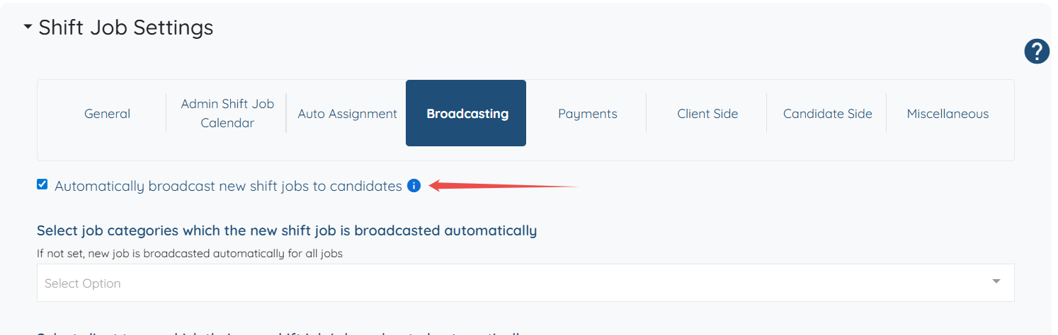 Step 5: Check the Automatically broadcast new shift jobs to candidates checkbox as shown in the screenshot below.