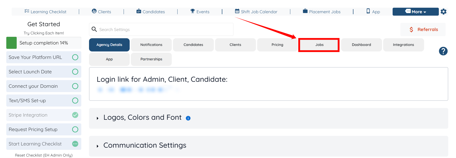 Step 2: Click the Jobs tab from the list of all the available tabs.