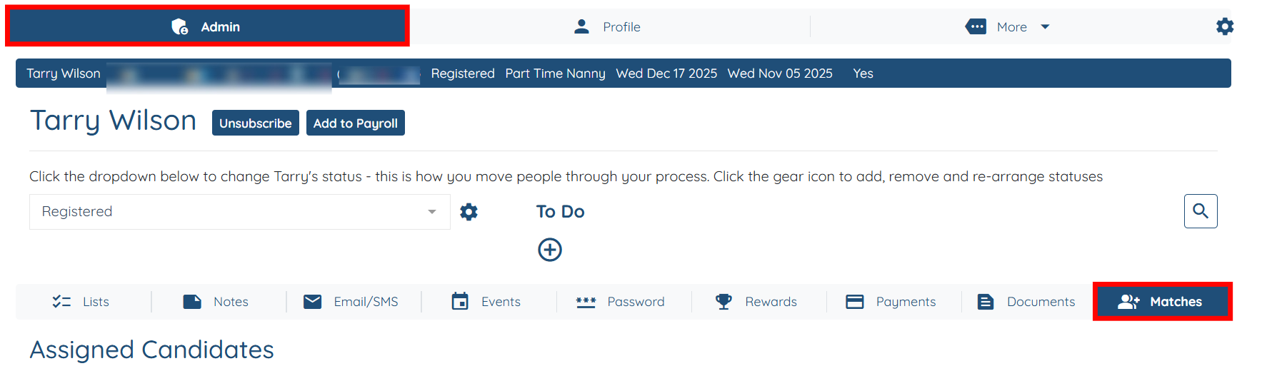 Stay on admin tab and click matches