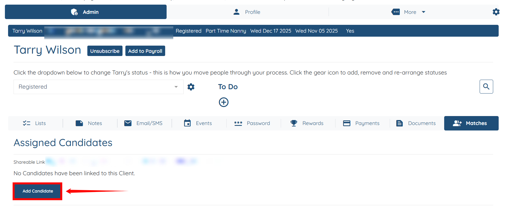 Click on add candidate