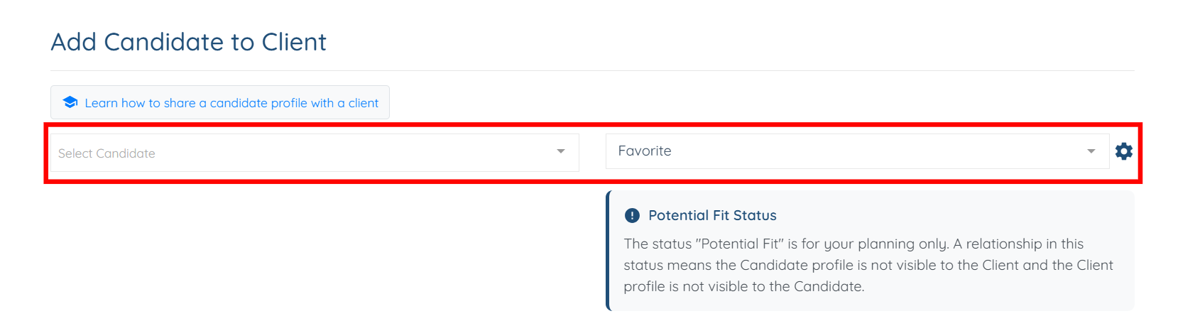 The candidate added as a favorite will appear in the client profile.
