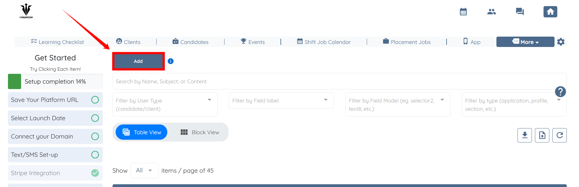 Step 2: Click the Add button to create a new section for memberships.