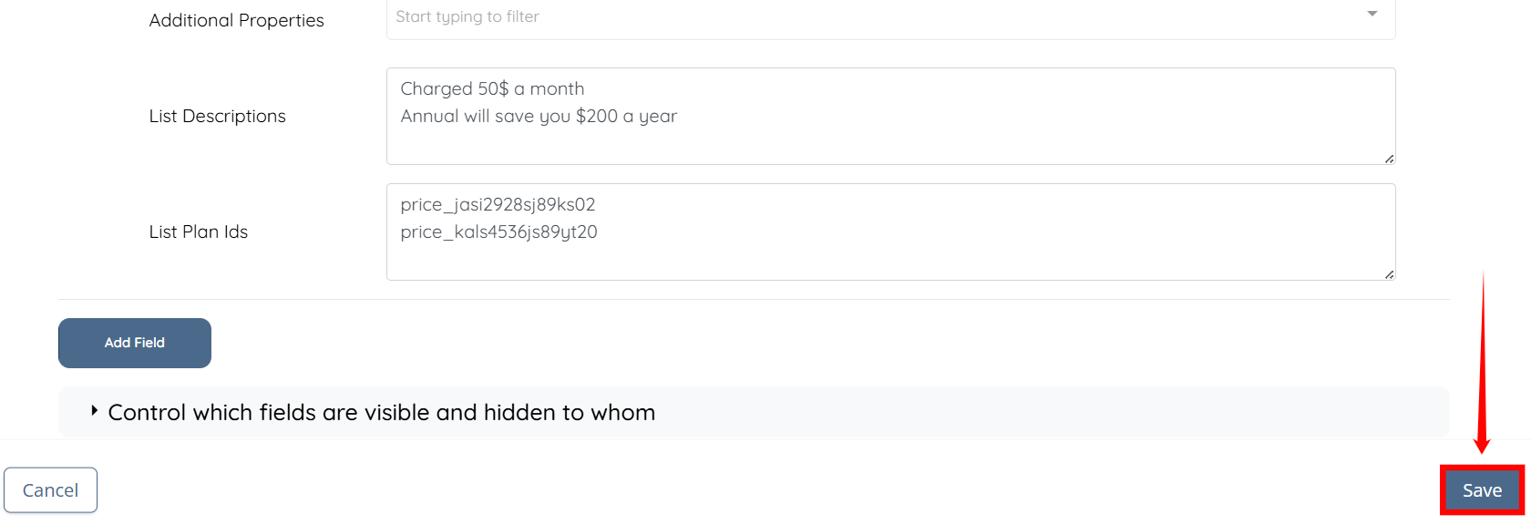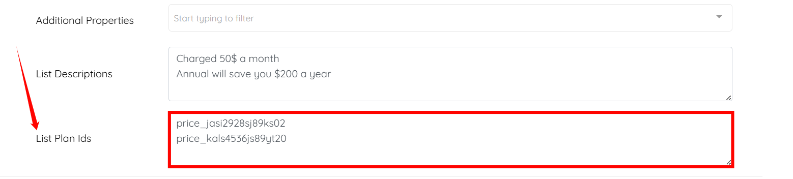 Step 7: Enter the Plan IDs for both options (for example, Monthly and Annually).