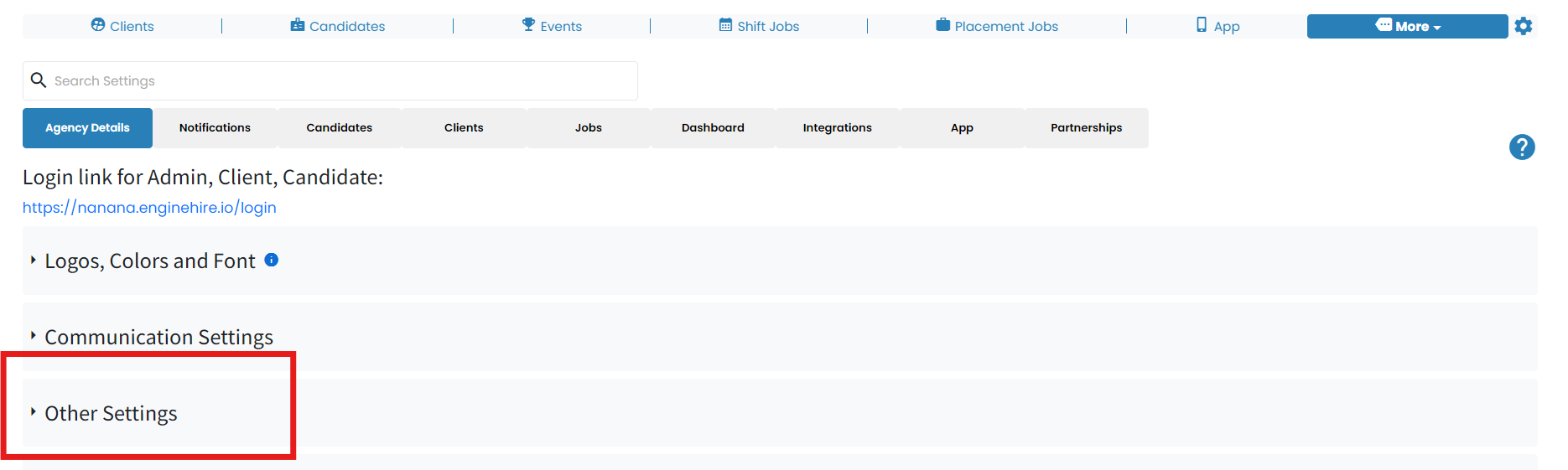 Stay on Agency Details and click other settings