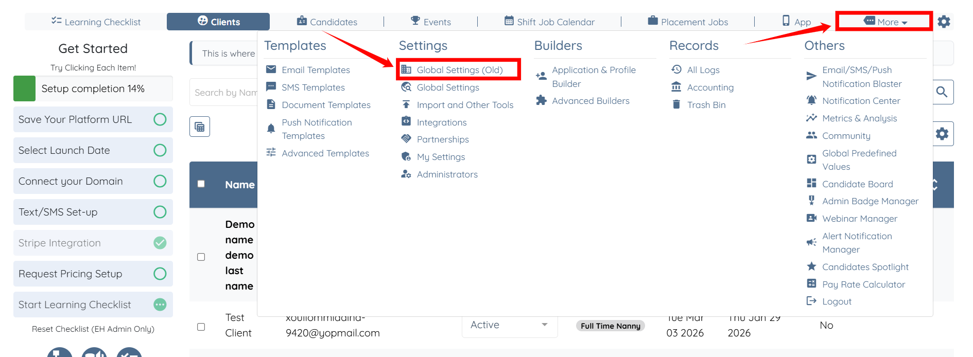 Step 1: Log in to your agent dashboard and click More > Global Settings (Old), as shown in the screenshot below.