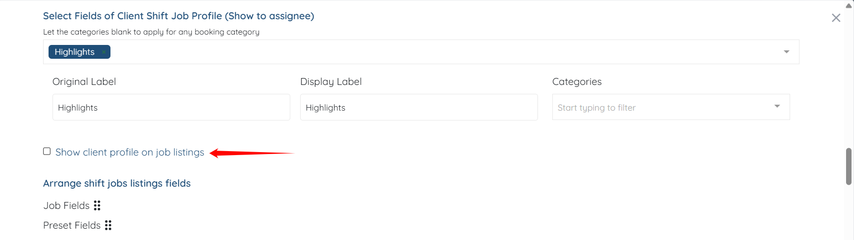Step 5: Check the Show client profile on job listings checkbox.