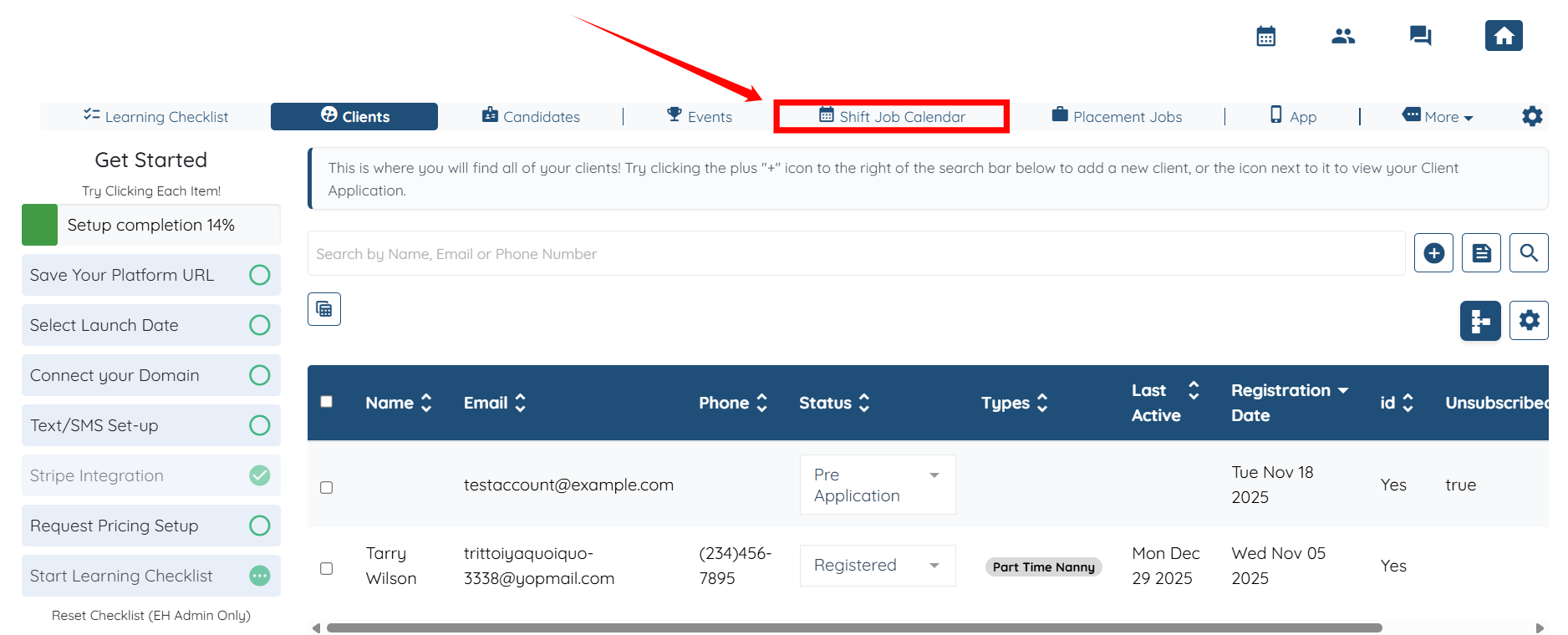 Step 1: Log in to your agent dashboard and click the Shift Job Calendar in the top navigation bar.