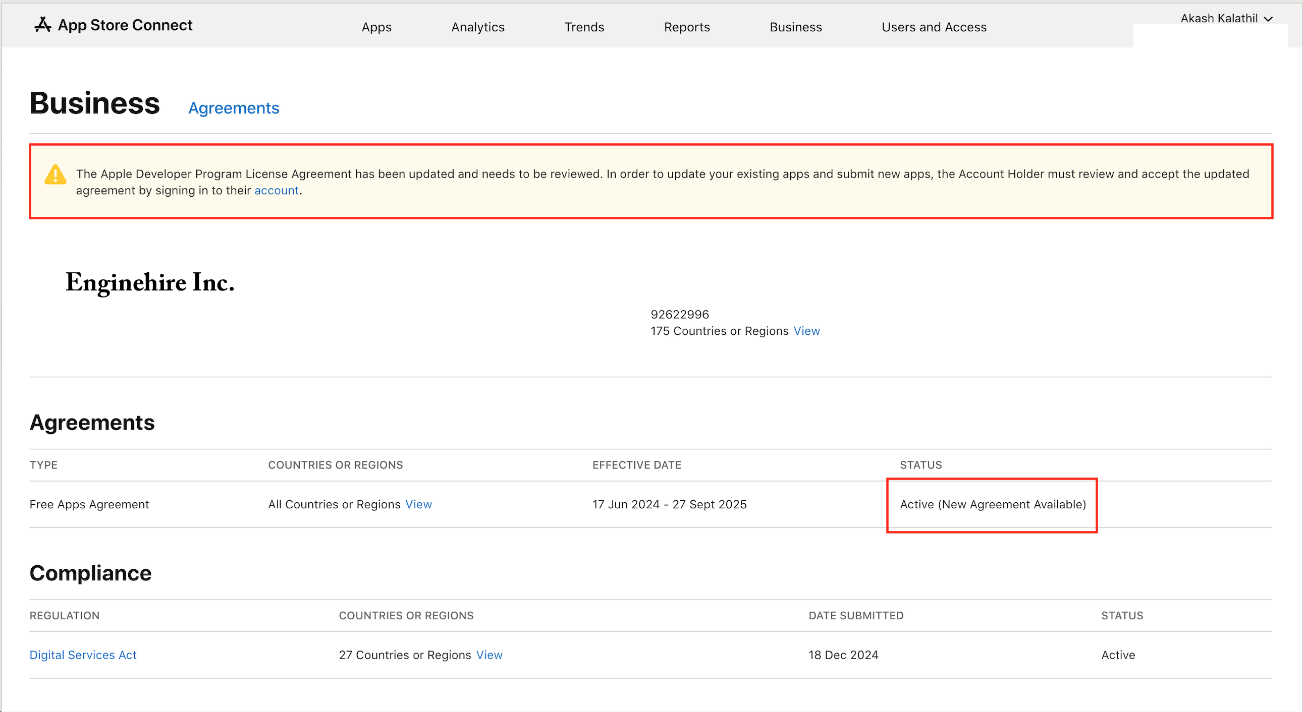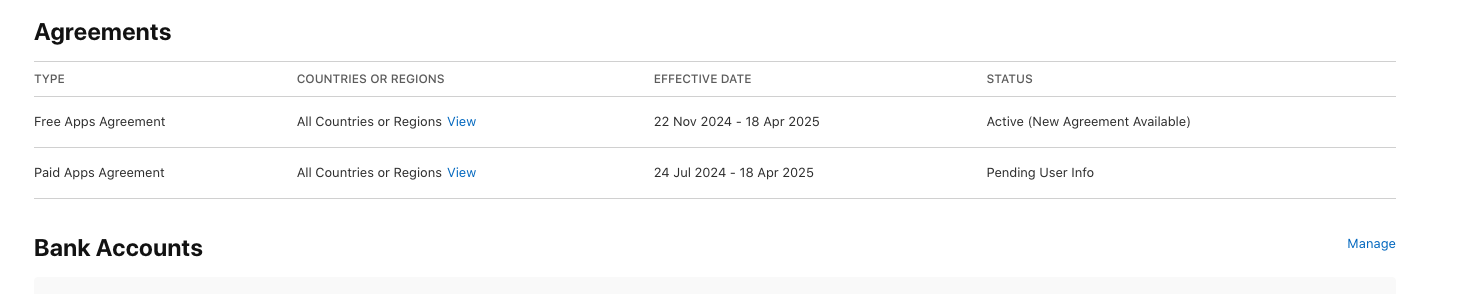 Make sure you have fulfilled all the necessary agreements and compliance requirements, excluding the Paid Apps Agreement.