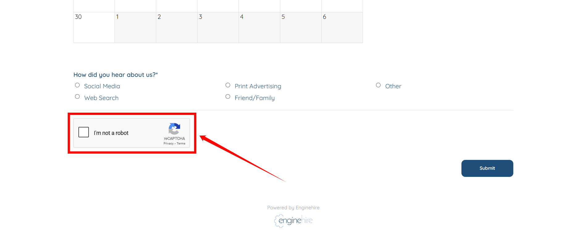 The activated captcha will appear on the application form as shown in the screenshot below.