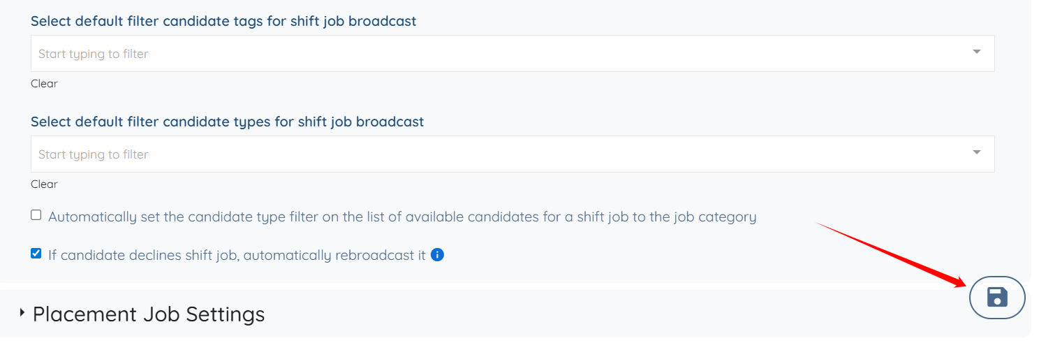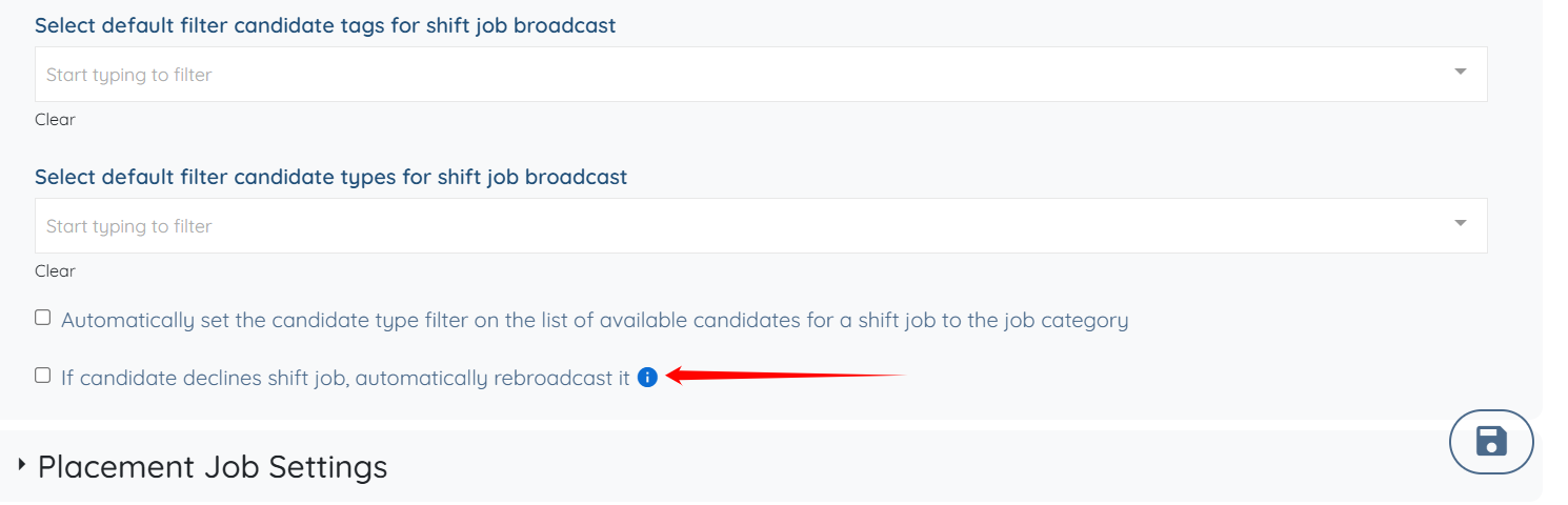 Turn on setting βIf candidate declines shift job, automatically rebroadcast itβ.