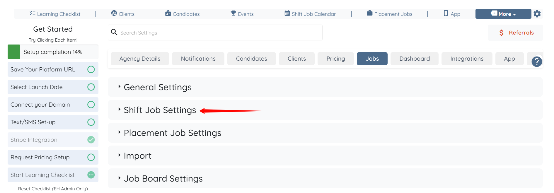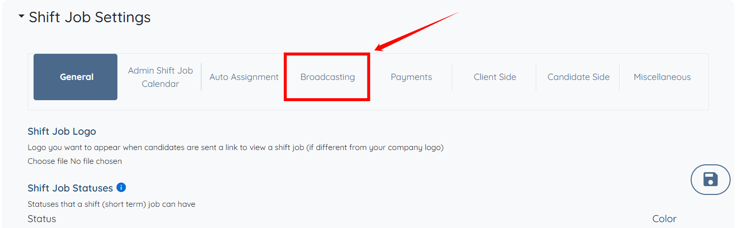 Click on shift jobs settings