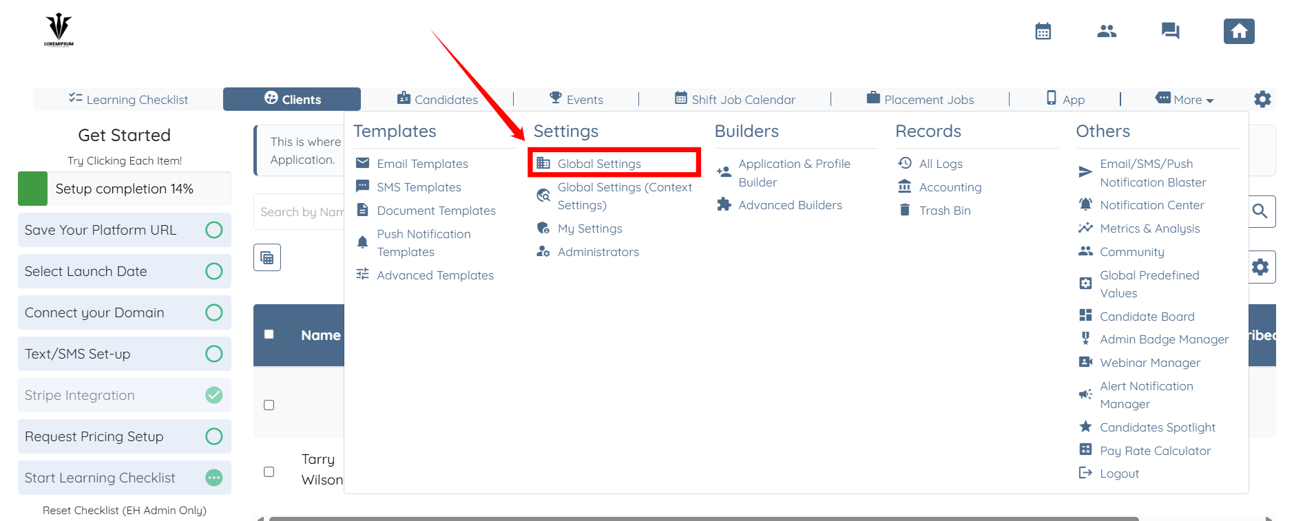 Go to Global Settings