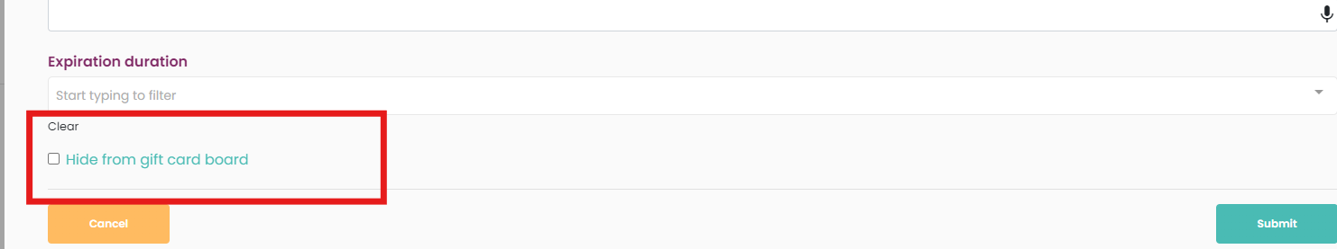 Within this feature, you can add gift cards to the gift cardboard but hide them so they are not displayed.